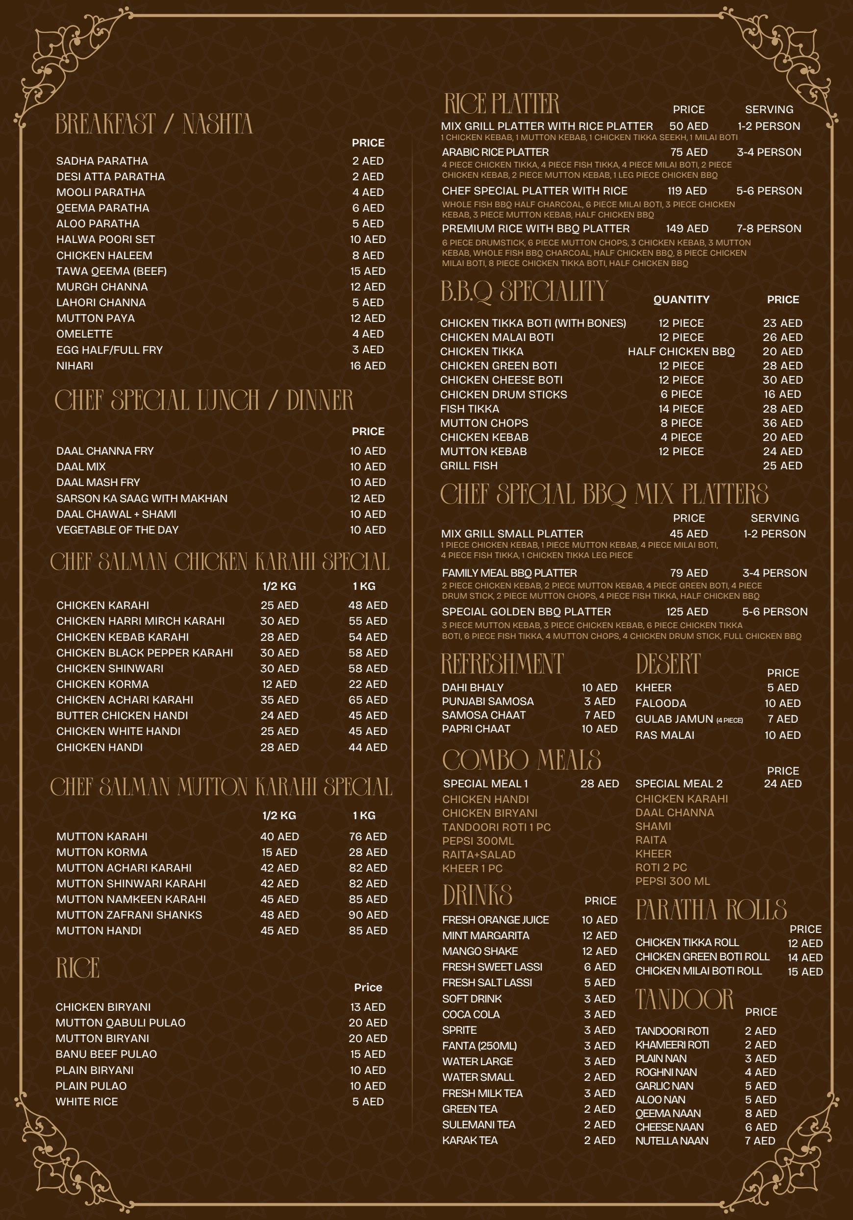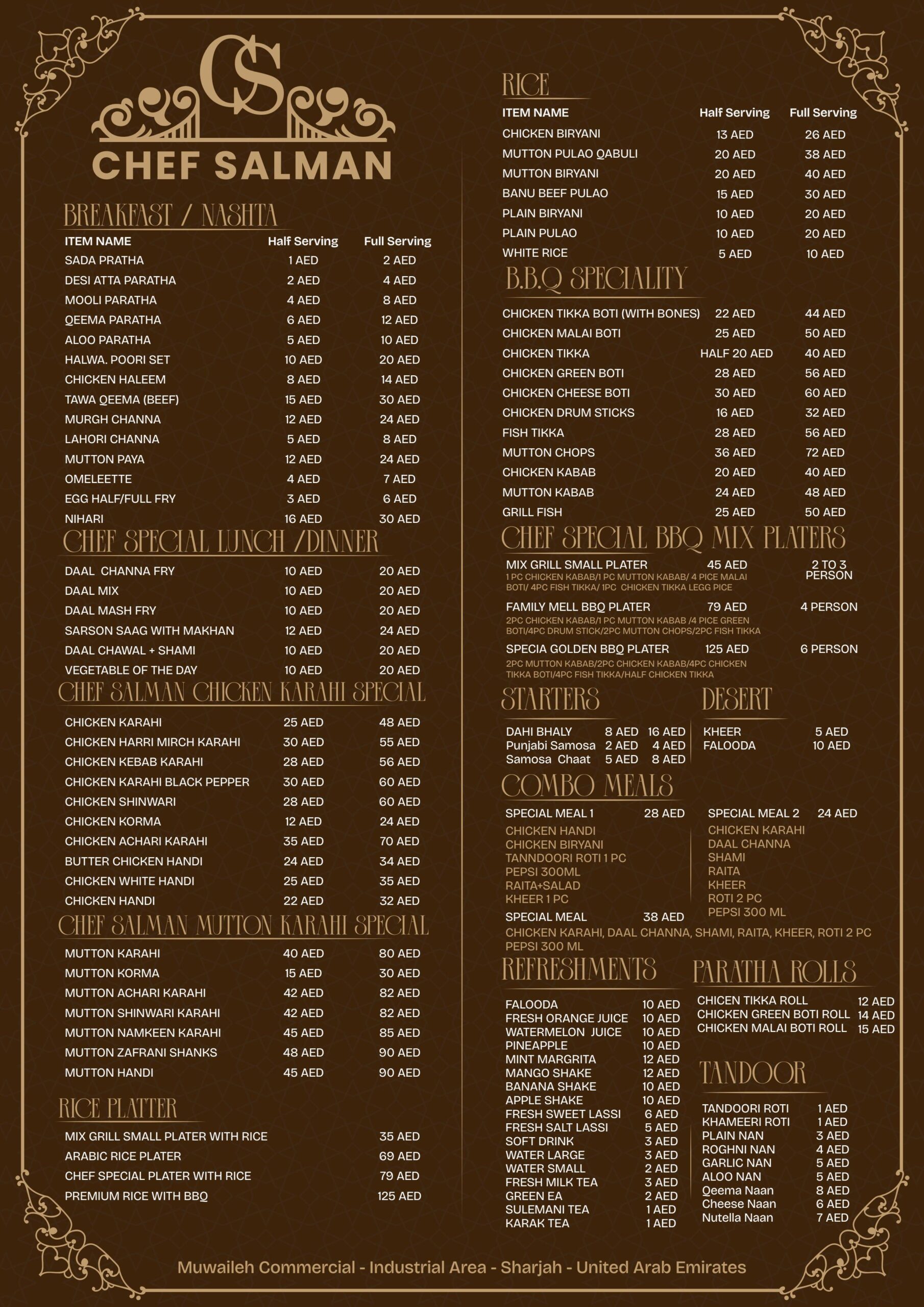 Explore Chef Salman’s exclusive creations, crafted for taste and luxury in every bite.